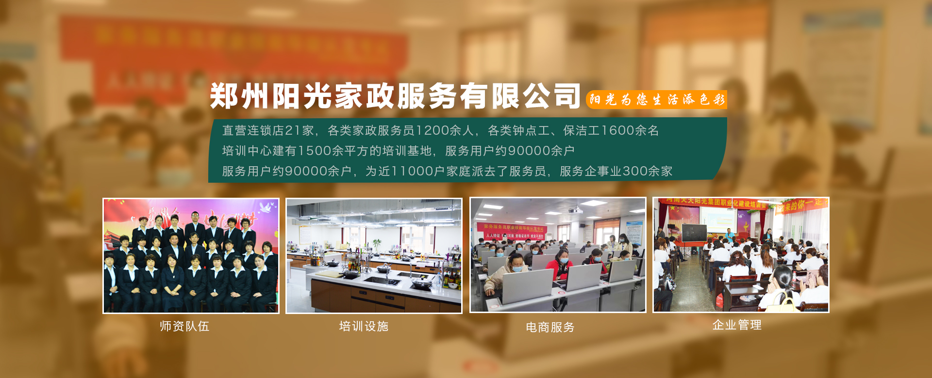 鄭州陽光家政服務有限公司成立于1998年,是鄭州市第 一家經(jīng)工商登記的家政服務企業(yè),是以家政服務、家政培訓、社區(qū)服務、社區(qū)養(yǎng)老、托幼護理、清洗保潔為一體的社區(qū)生活服務集成商。公司有直營連鎖店21家,各類家政服務員1200余人,各類鐘點工、保潔工1600余名。鄭州陽光家政商學院建有1500余平方的培訓基地,···